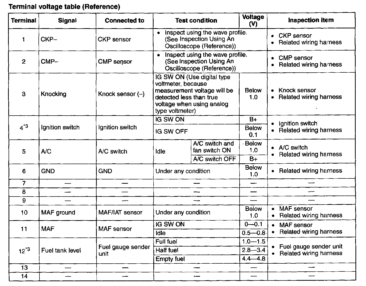Terminal Voltage Table(Reference) - Terminals (1 - 14):
