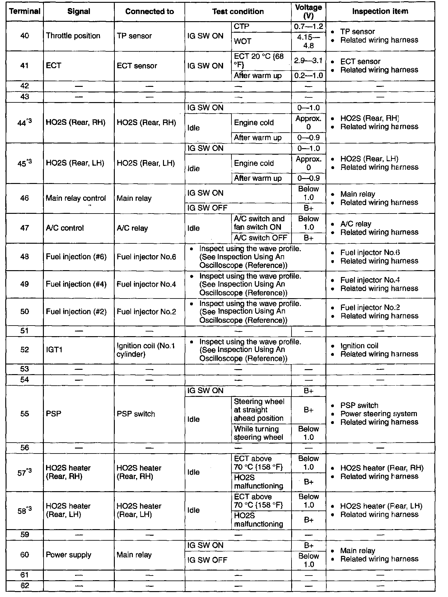 Terminal Voltage Table(Reference) - Terminals (40 - 62):