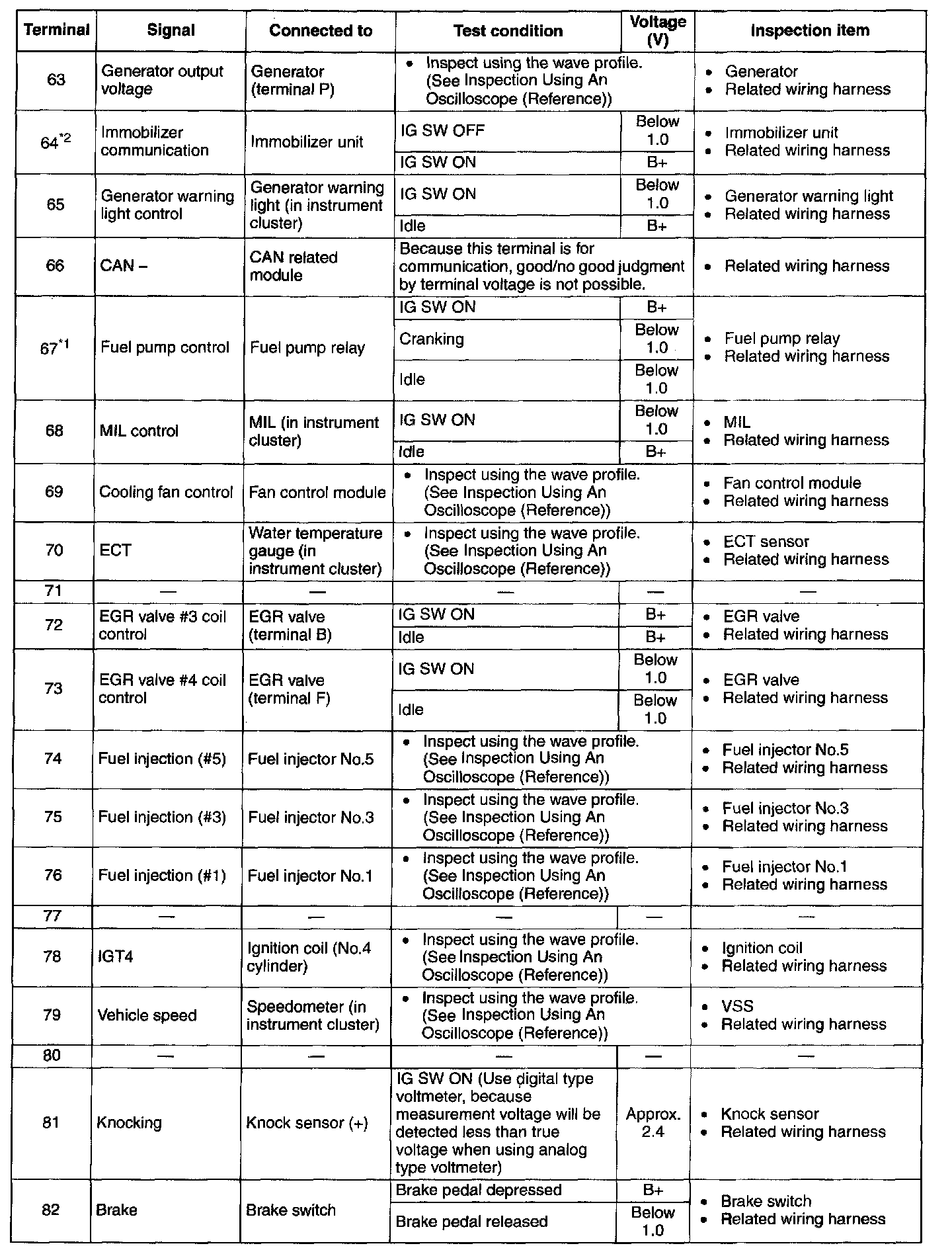 Home >> Mazda >> 2007 >> MX-5 Miata L4-2.0L >> Repair and Diagnosis >> Powertrain Management >> Computers and Control Systems >> Engine Control Module >> Testing and Inspection >> Pinout Values and Diagnostic Parameters >> Control Module Pinout Values
