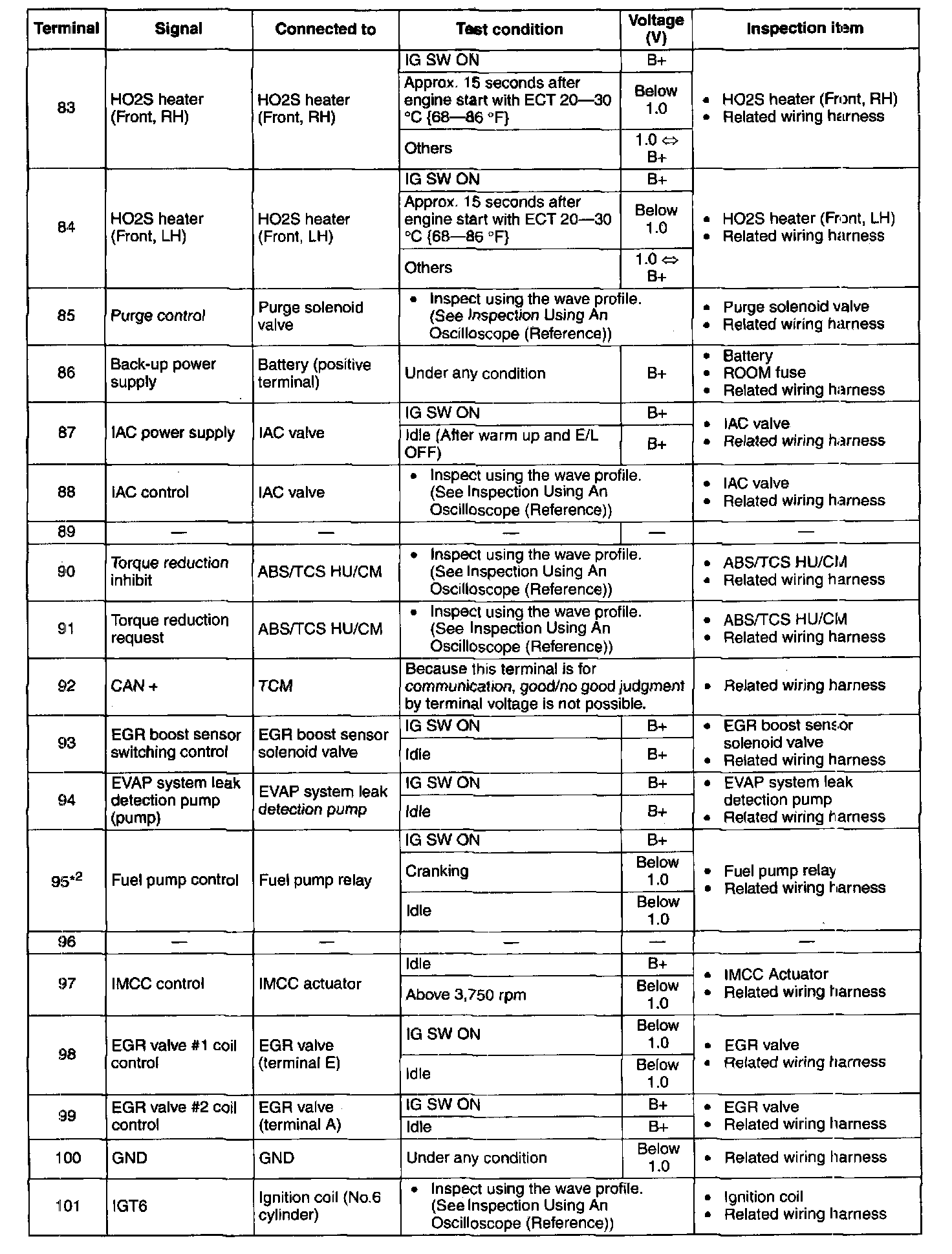 Terminal Voltage Table(Reference) - Terminals (83 - 101):