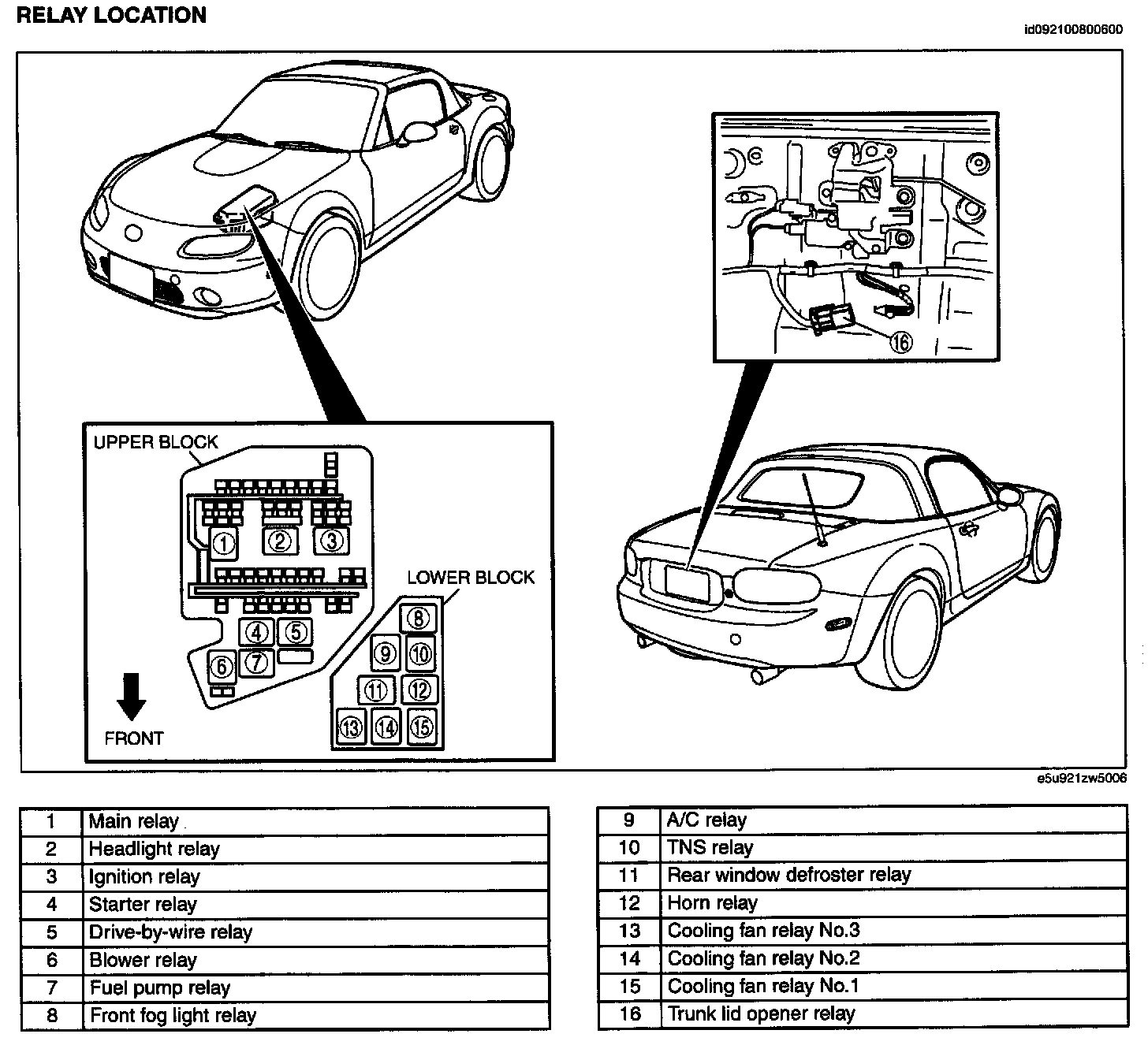 Main Relay (Computer/Fuel System): Locations