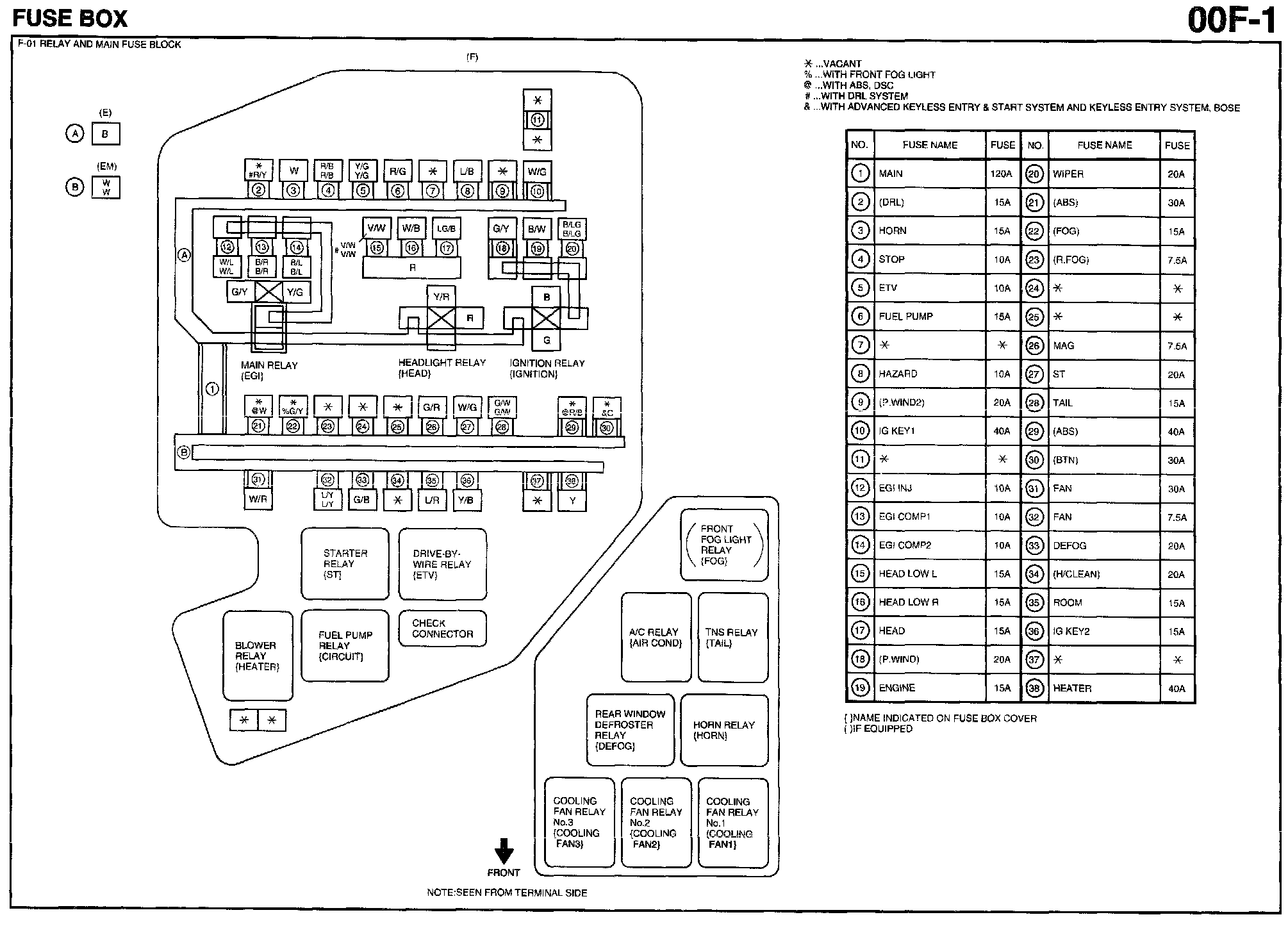 F-01 Relay And Main Fuse Block: