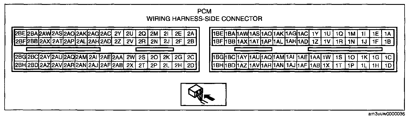 - Cruise control switch terminal A and PCM terminal 1AQ*1, 1AD*2