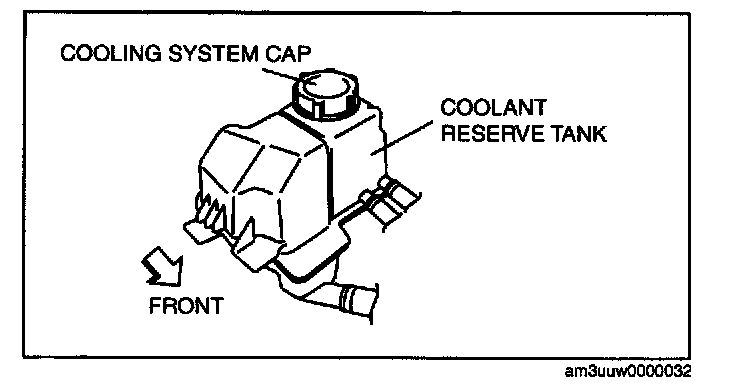 ^ If it is low, refill the coolant into the coolant reserve tank up to the F mark on the tank.