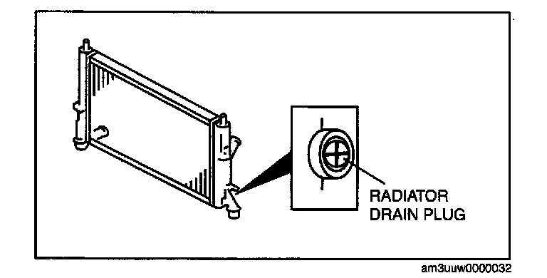 3. Loosen the radiator drain plug and drain the engine coolant into a container.
