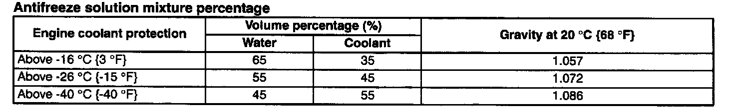 ^ Do not use coolants containing Alcohol, Methanol, Borate or Silicate. These coolants could damage the cooling system.