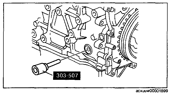 1. Rotate the crankshaft in the direction of the engine rotation and remove the cylinder block lower blind plug when the No. 1 cylinder is at the point prior to top dead center (TDC) of compression, then install the SST.