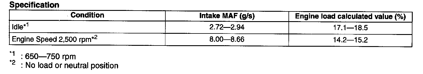- If the MAF PID value is out of specification, carry out the �Circuit Open/Short Inspection".