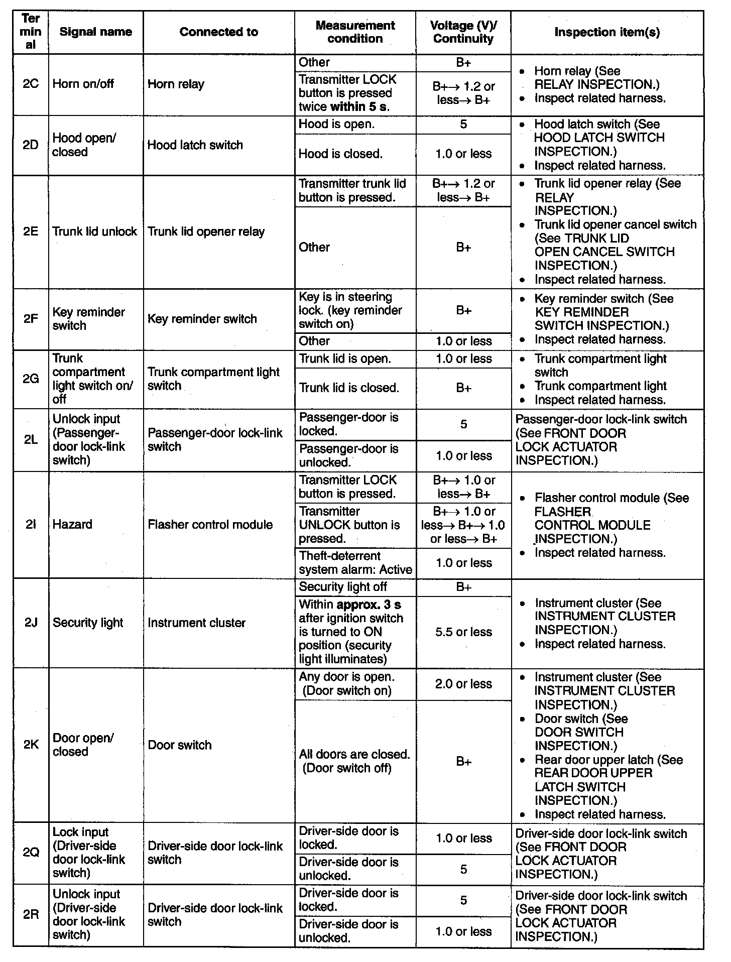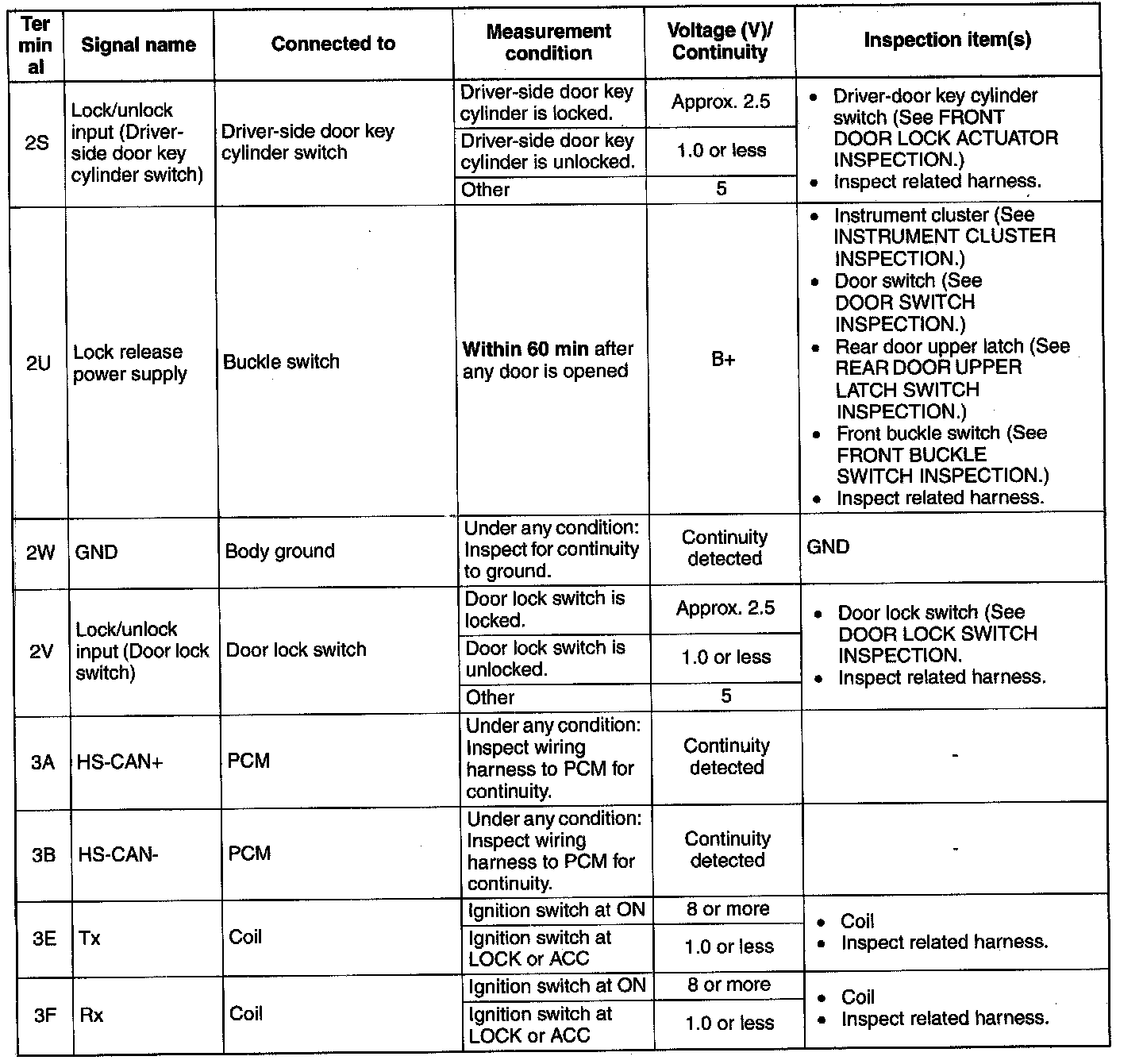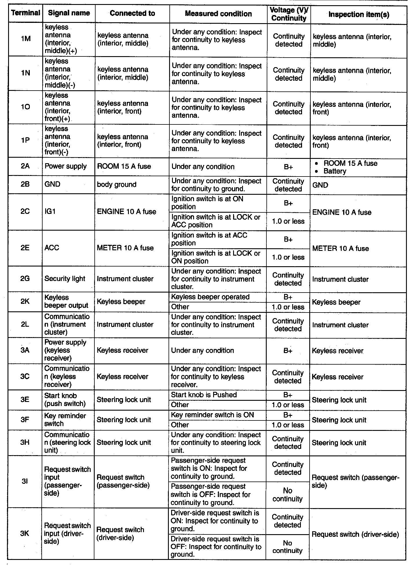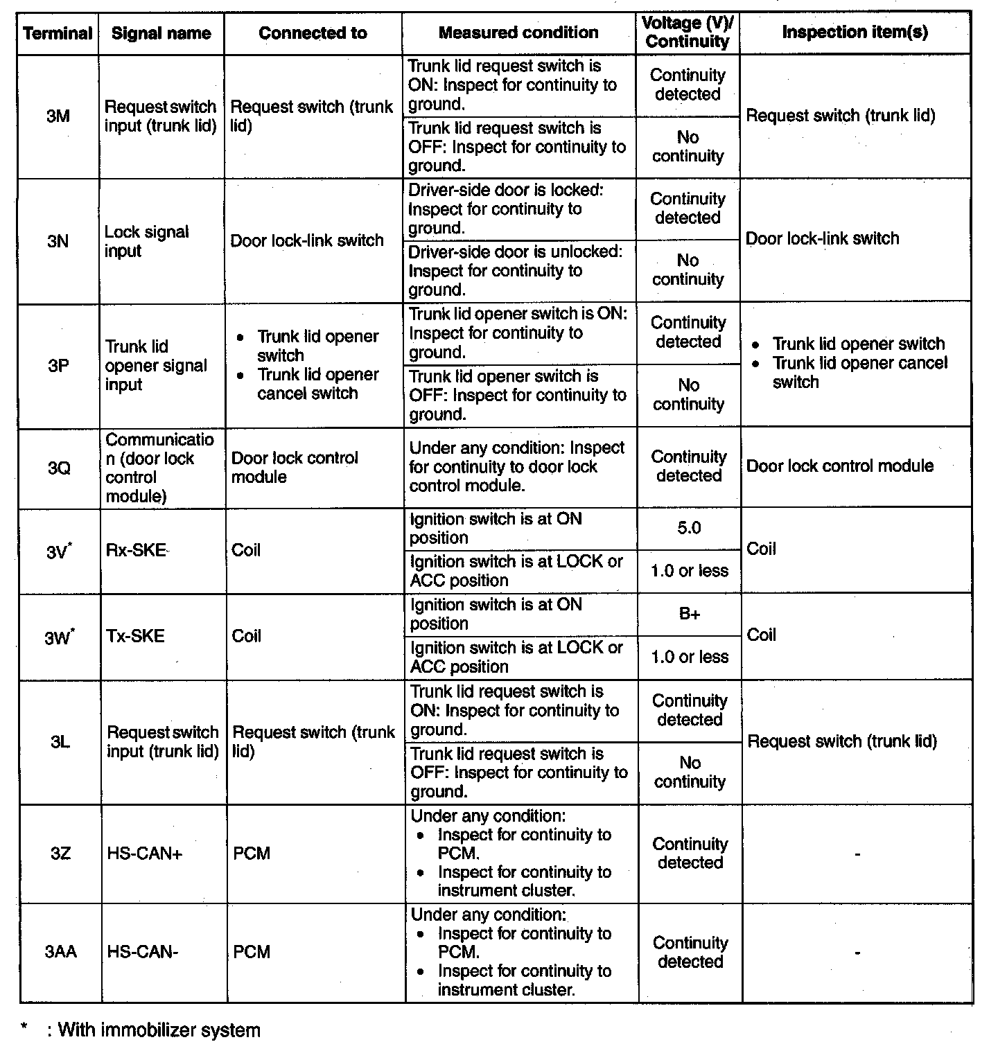 Pinout Values and Diagnostic Parameters