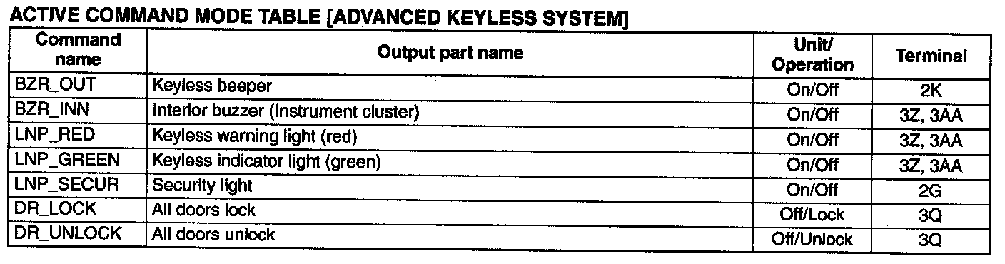 Active Command Mode Table[Advanced Keyless System]: