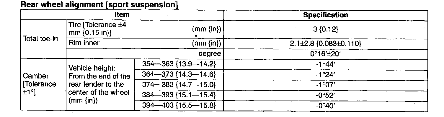Specification (Unloaded Condition)Rear Wheel Alignment [Standard Suspension]: