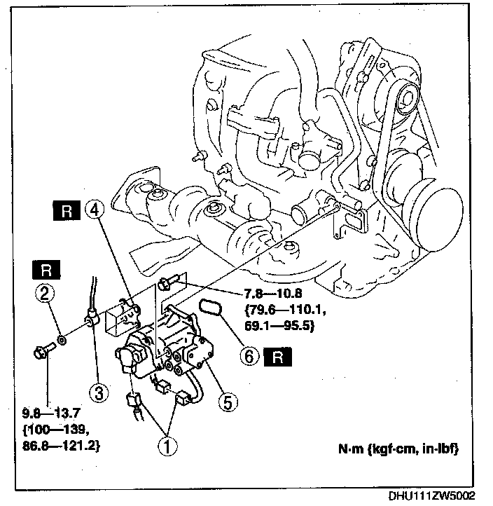 Tightening torque 42 - 60 Nm (4.3 - 6.1 kgf-m, 31 - 44 ft-lbf)
