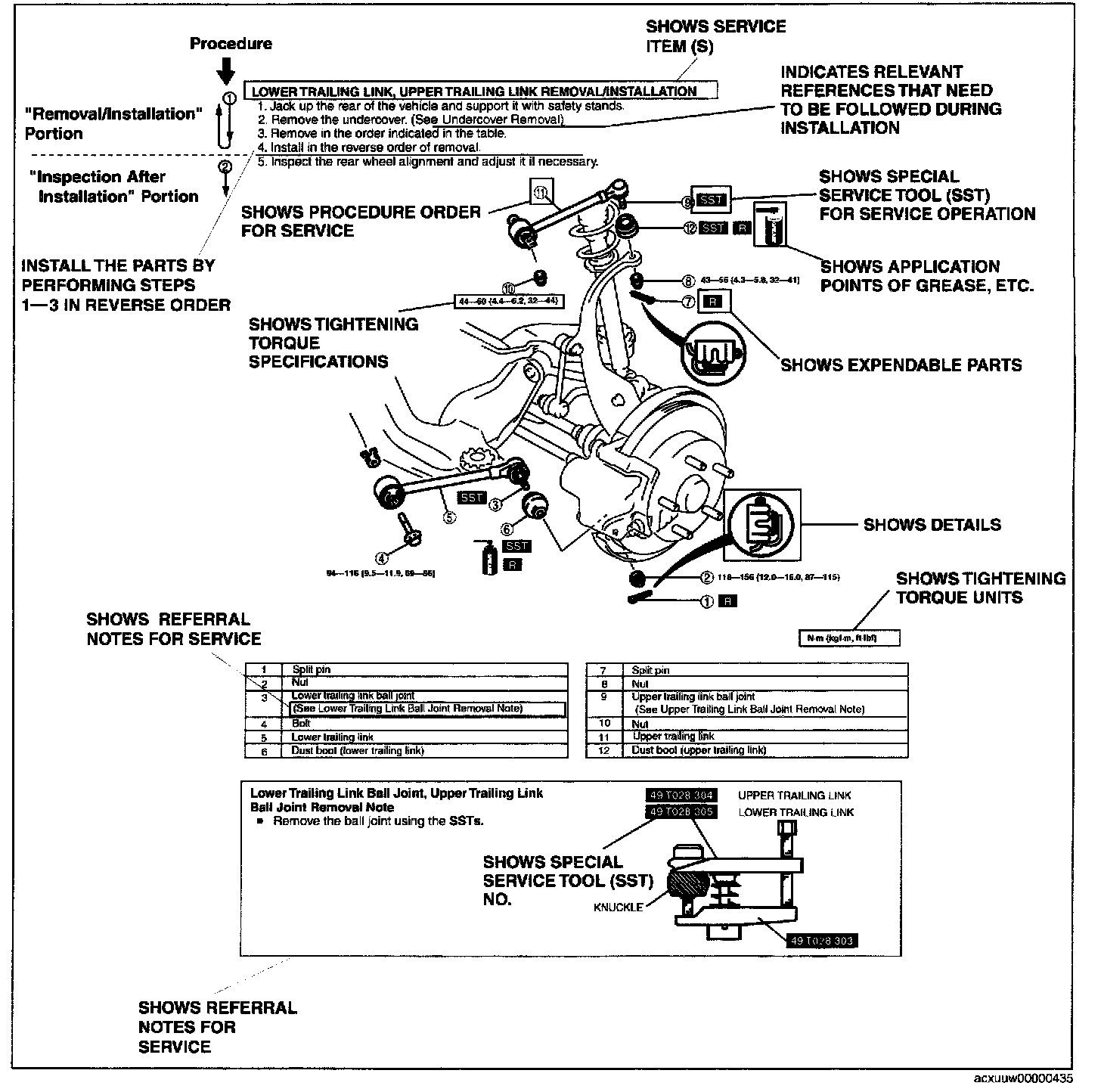 - Inspection and adjustment procedures are divided into steps. Important points regarding the location and contents of the procedures are explained in detail and shown in the illustrations.