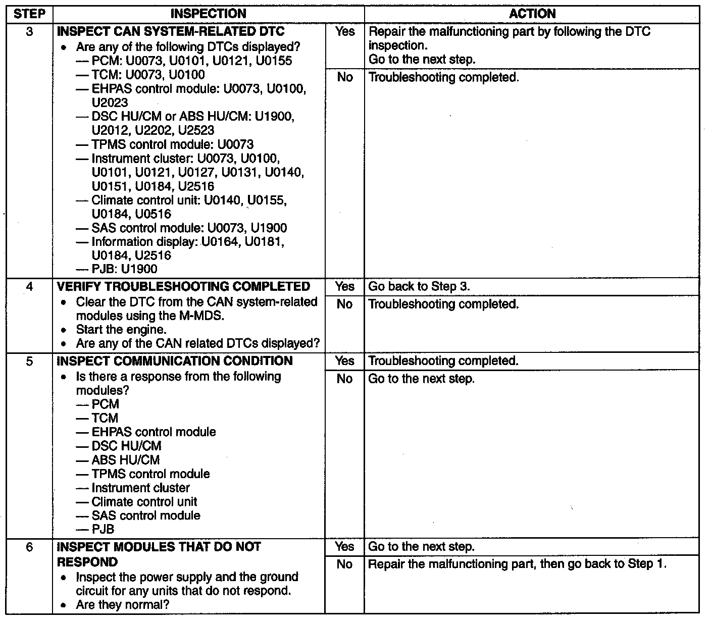 - If the controller area network (CAN) system is malfunctioning, read the DTCs of the following modules, using the M-MDS to determine the malfunctioning system.
