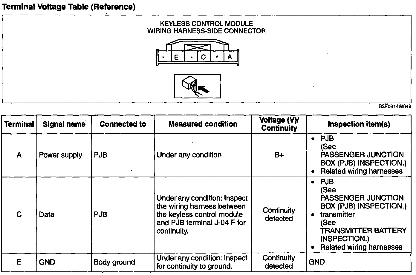 Terminal Voltage Table (Reference):