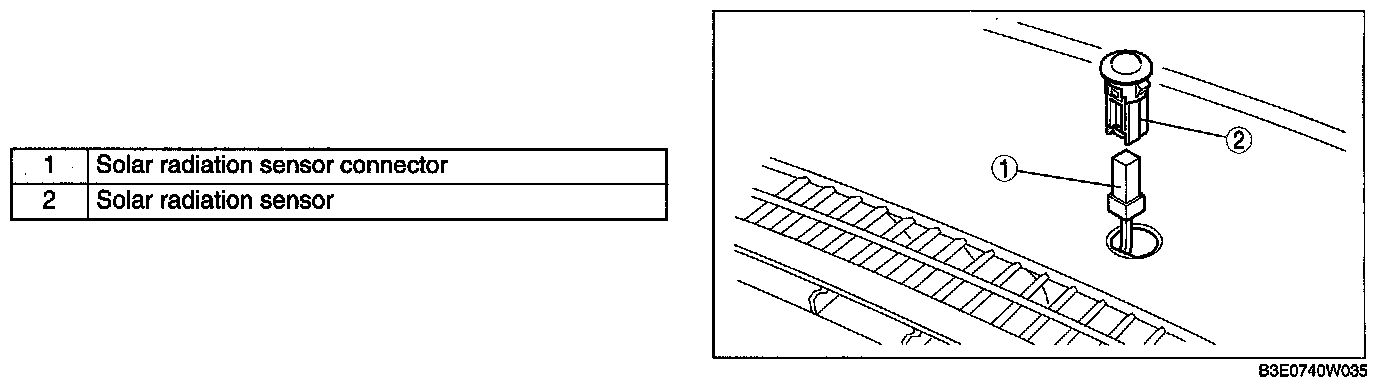 CAUTION: After the solar radiation sensor removal, the sensor connector could tall in the dashboard making the installation difficult. Therefore, hold the rooted end of the sensor connector using a clip or similar tool to prevent it from falling.