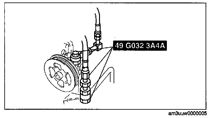 2. Disconnect the oil pump side joint of the pressure hose, connect the SSTs set in the Step 1.
