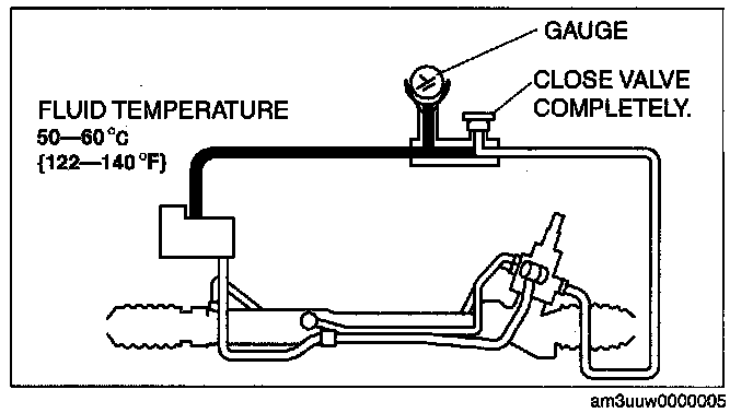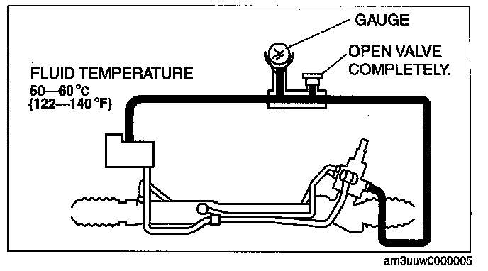 9. Turn the steering wheel fully to the left and right, then measure the fluid pressure generated at the gear housing.