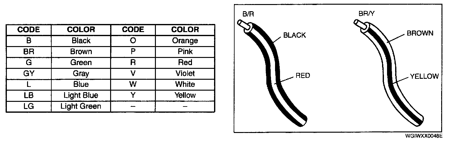 - The first letter indicates the base color of the wire and the second the color of the stripe.