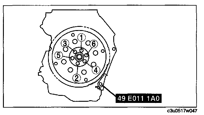Tighten the drive plate mounting bolts in two or three steps in the order as shown in the figure.