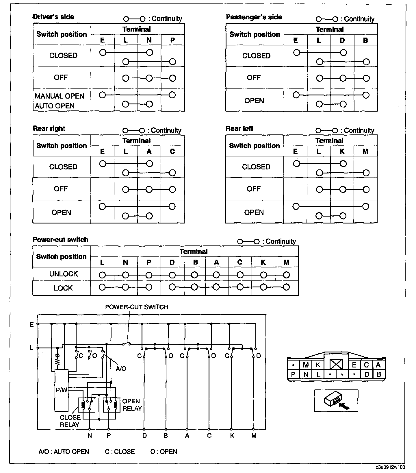 POWER WINDOW MAIN SWITCH INSPECTION1. When inspecting the passenger-side and rear power windows, turn the power-cut switch to UNLOCK.