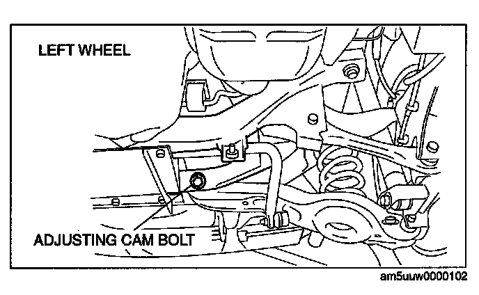 2. Rotate the adjusting cam bolt in either direction to adjust the toe-in.