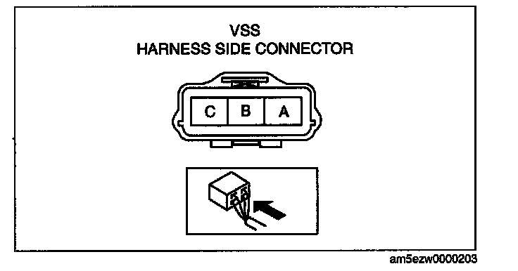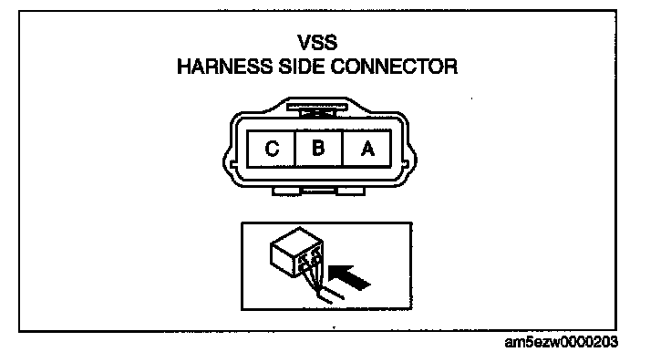 2) Measure the voltage at VSS connector terminal C (wiring harness side).