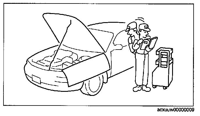 NOTE: Referring to the fluorescent dye instruction manual, mix the specified amount of dye into the engine oil or ATF (or transaxle/transmission oil).