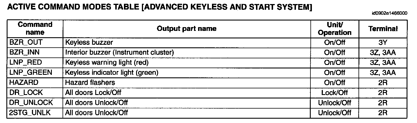 Active Command Modes Table [Advanced Keyless And Start System]: