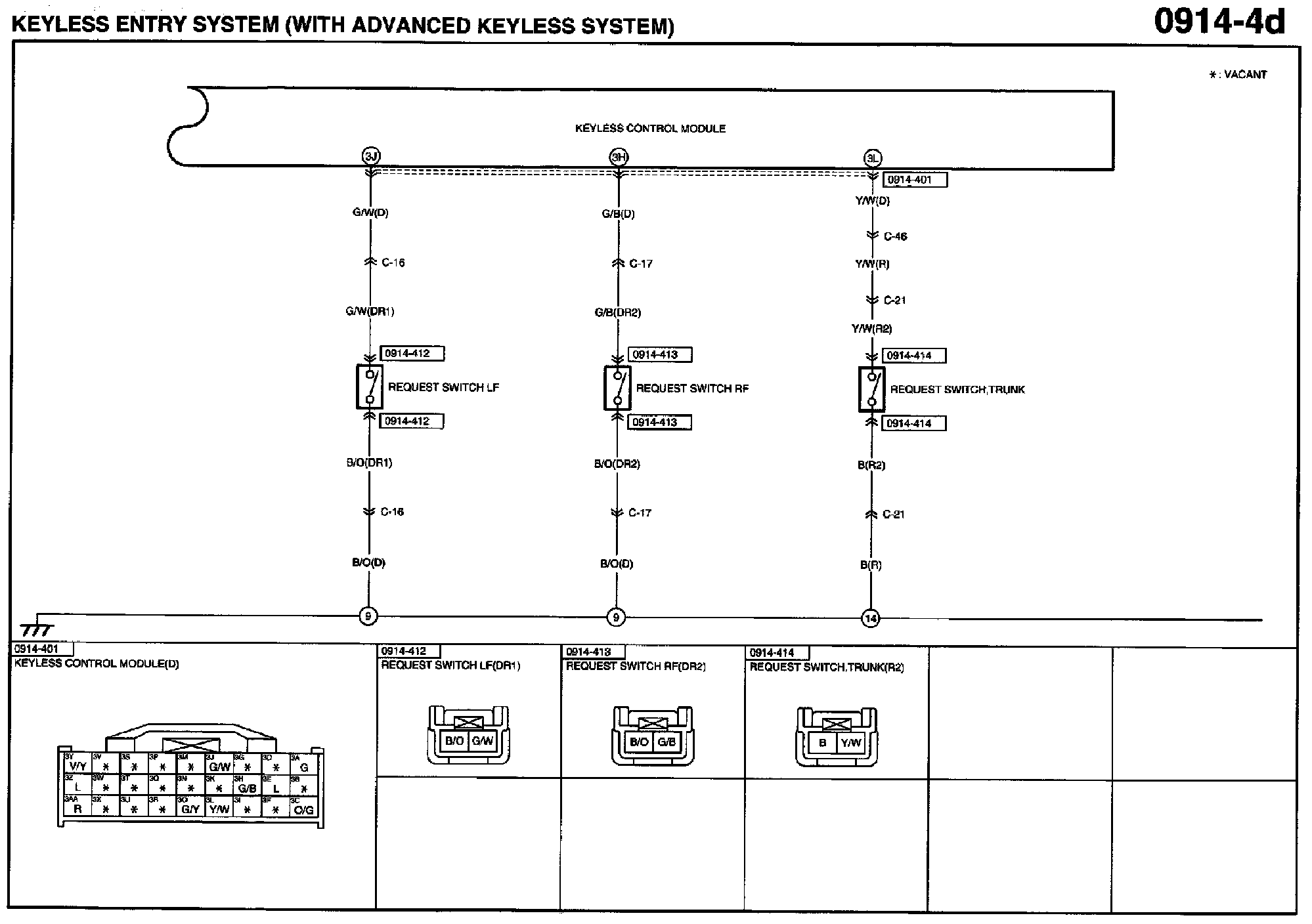 Home >> Mazda >> 2008 >> 6 L4-2.3L >> Repair and Diagnosis >> Diagrams >> Electrical Diagrams >> Keyless Entry >> Keyless Entry System (With Advanced Keyless System)