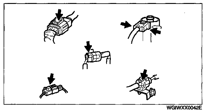 - When disconnecting connector, grasp the connectors, not the wires.