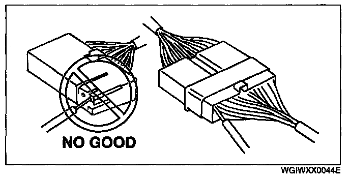 - When a tester is used to inspect for continuity or measuring voltage, insert the tester probe from the wiring harness side.