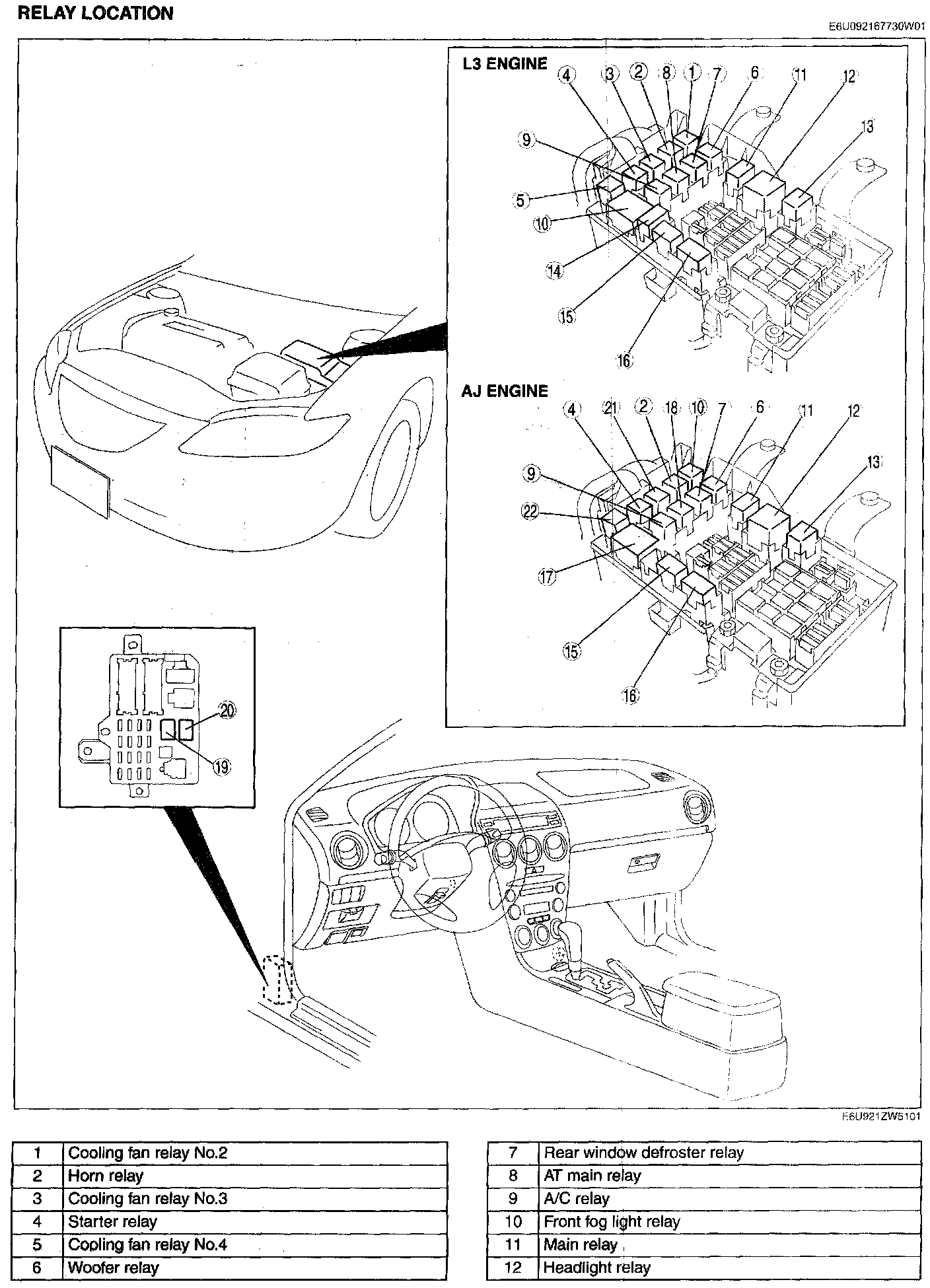 Main Relay (Computer/Fuel System): Locations