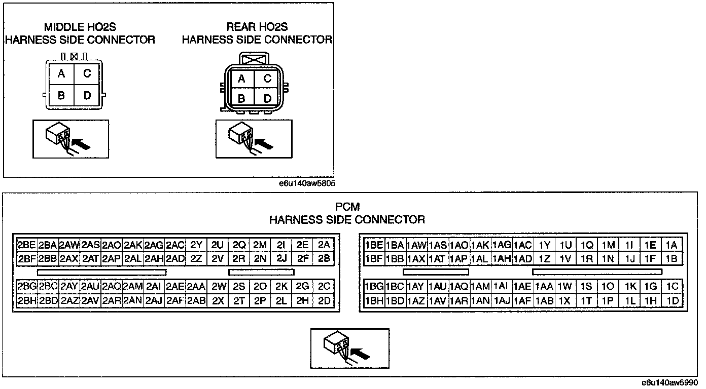 - Rear H02S terminal D and PCM terminal 2BE