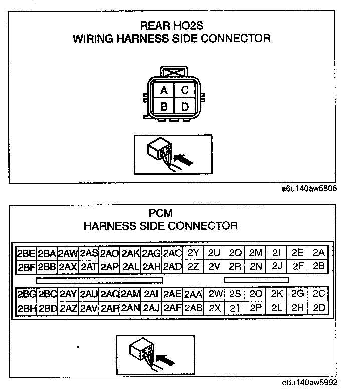- Rear HO2S terminal A and PCM terminal 2Q