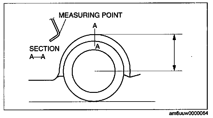6. Measure the height from the center of the wheel to the fender brim. The difference between the left and right measurement must not exceed 10 mm (0.39 in).