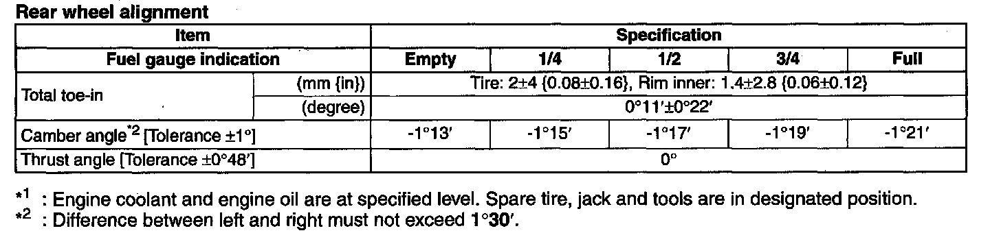 *1 : Engine coolant and engine oil are at specified level. Spare tire, jack and tools are in designated position.