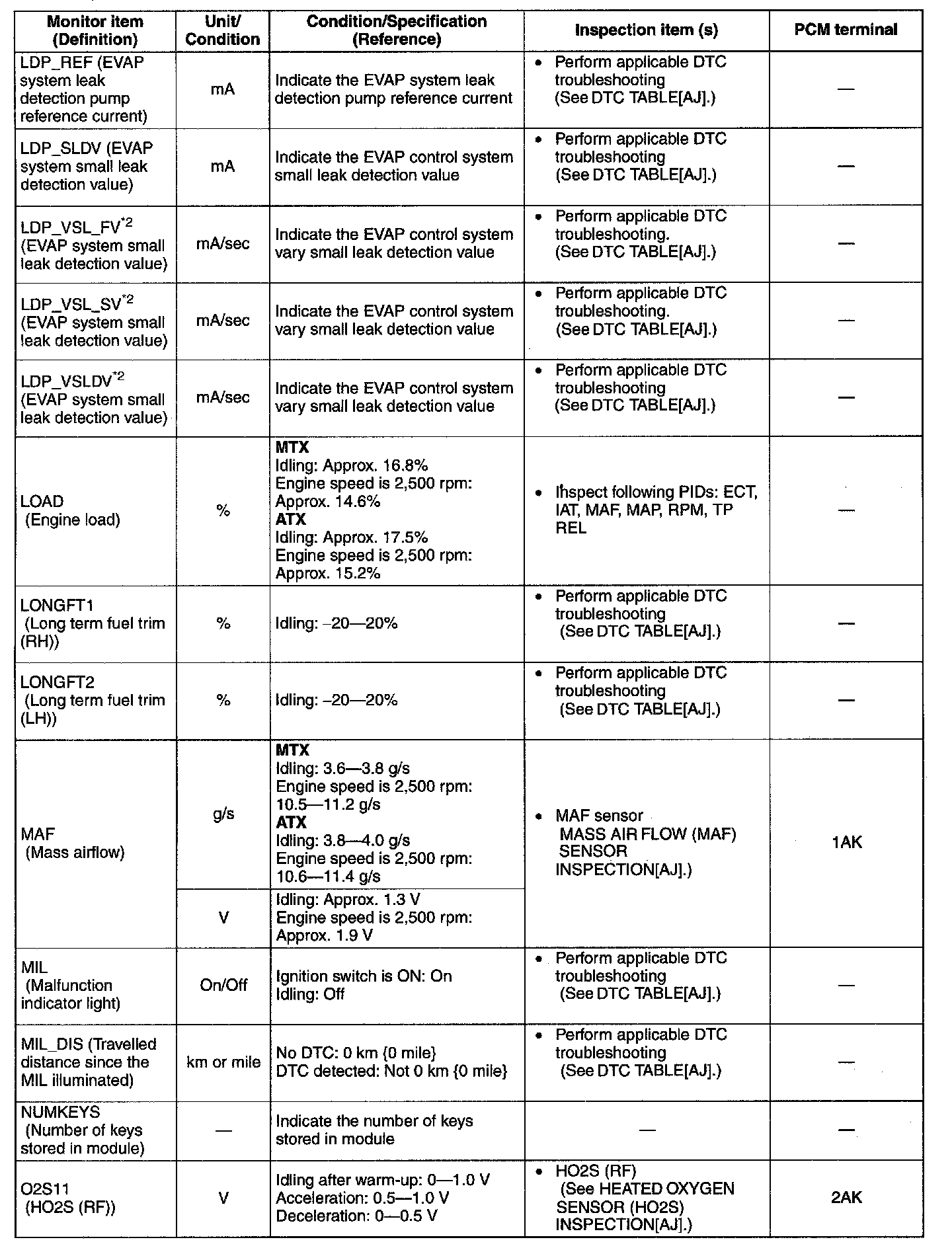 PID/Data Monitor Table(Reference) (Part 2):