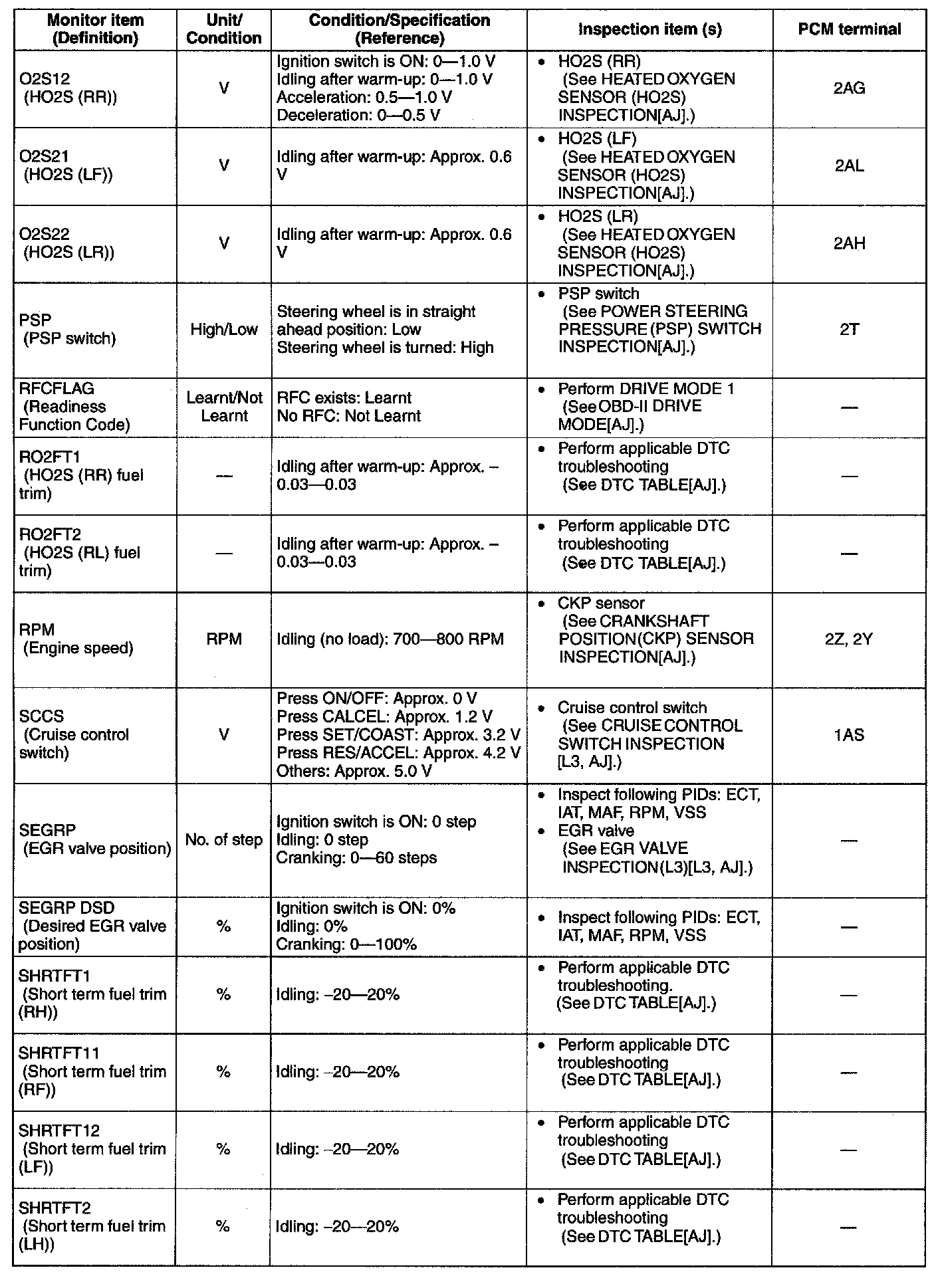 PID/Data Monitor Table(Reference) (Part 1):