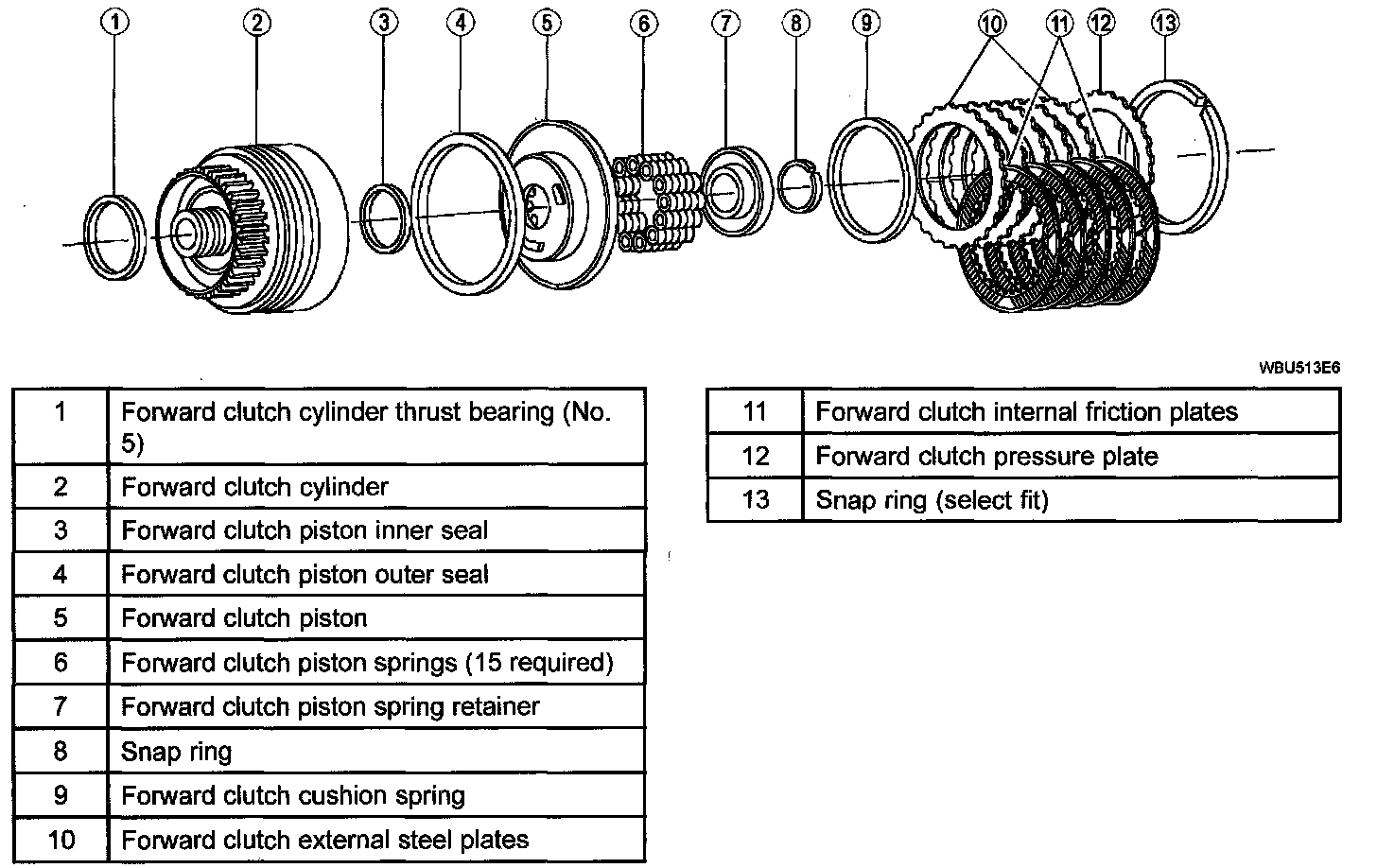 ^ The forward clutch is applied with hydraulic pressure and disengaged by return springs and the exhaust of the hydraulic pressure.