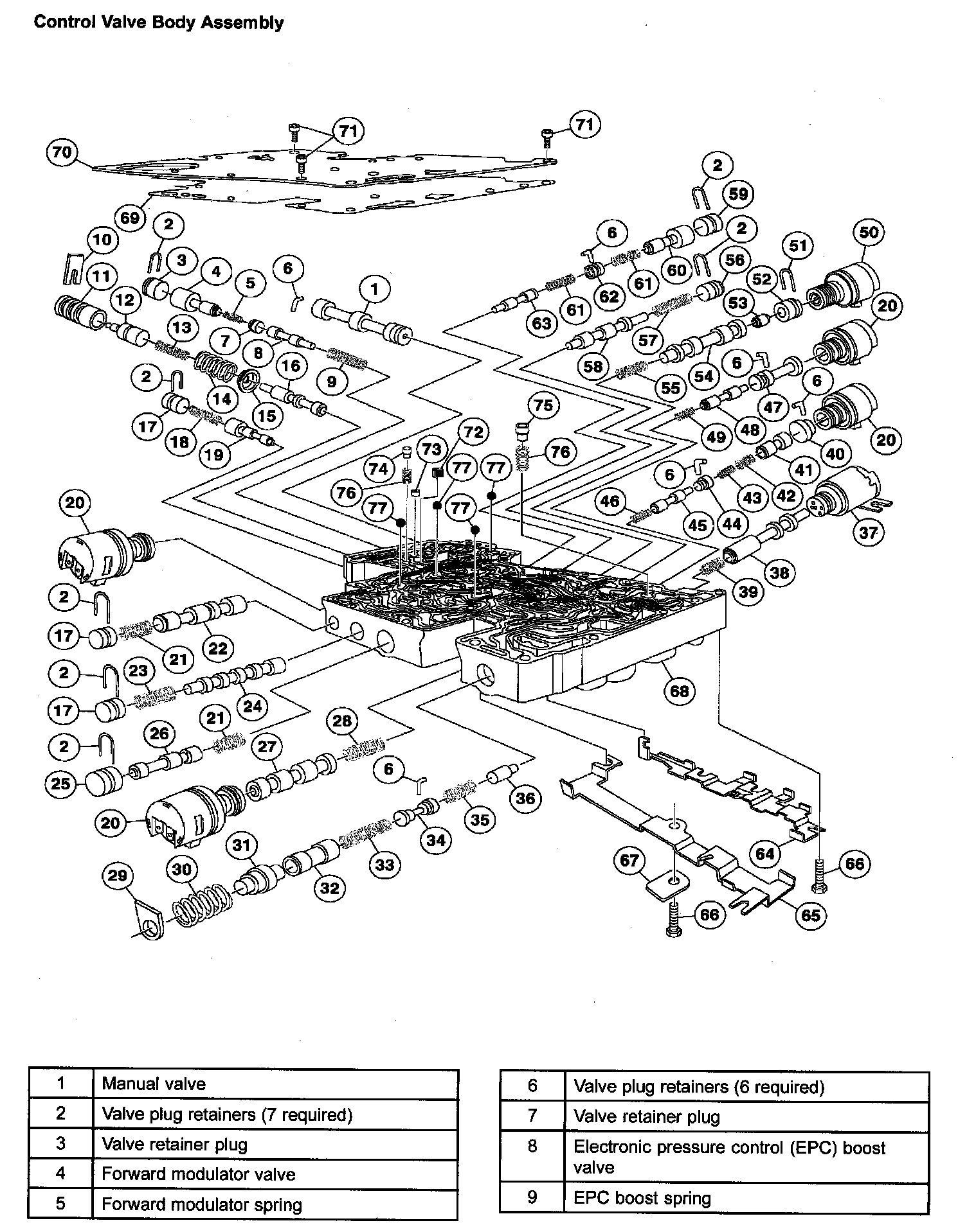 ^ The control valve body consists of the solenoids, the valve body assembly and the separator plate.