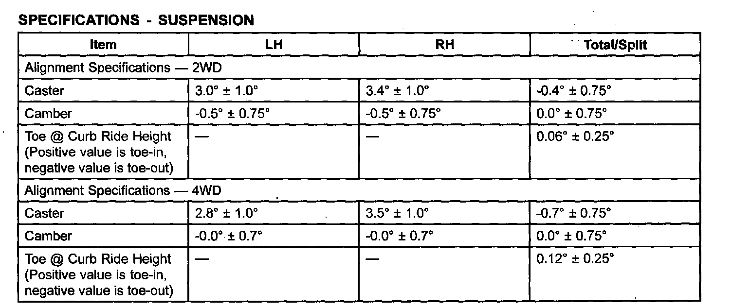 SPECIFICATIONS - SUSPENSION