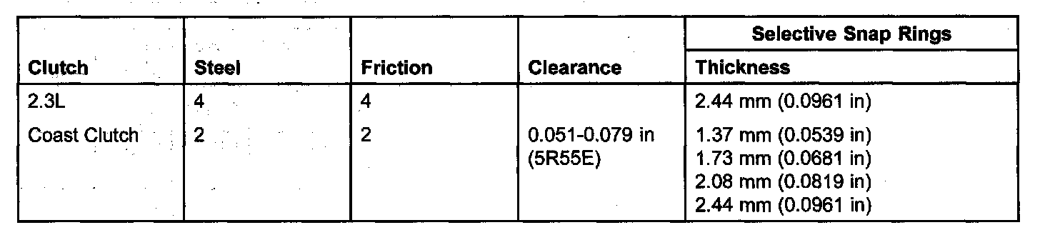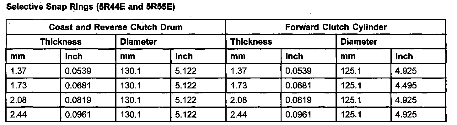 Clutch Plate Usage And Clearance Specifications (5R44E and 5R55E) Part 1):