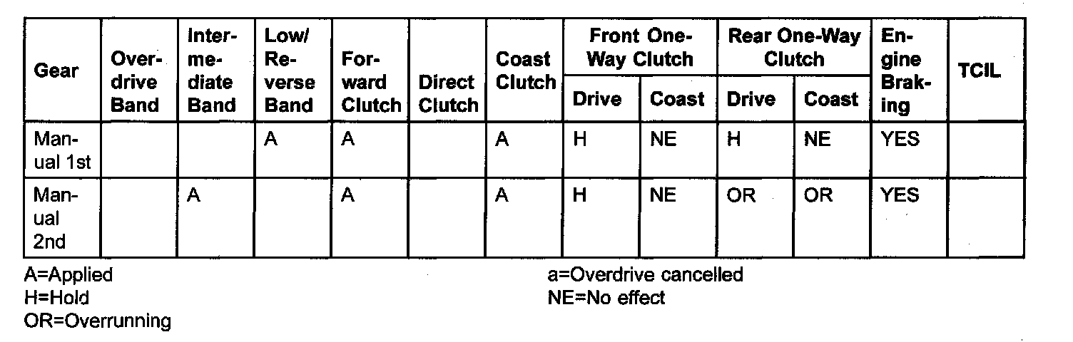 Band/Clutch Application Chart (5R44E and 5R55E)