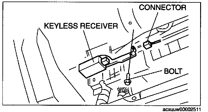 4. Remove the bolt, then remove the keyless receiver.