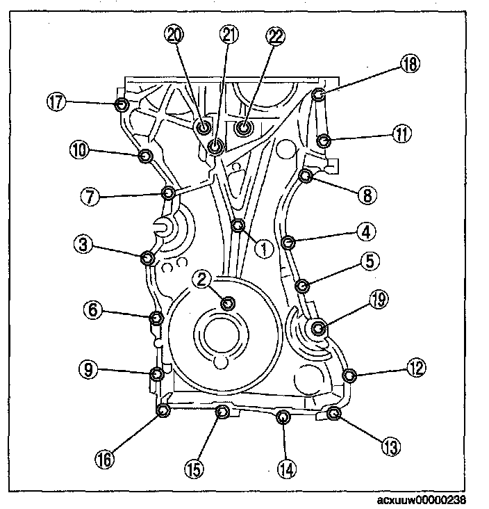 Tighten the engine front cover installation bolts in the order shown in the figure.