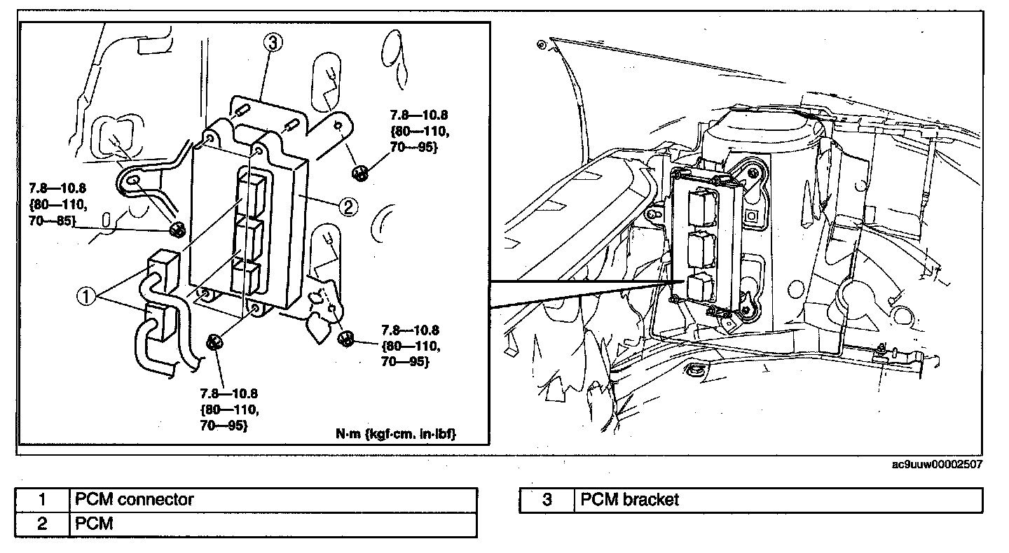 PCM REMOVAL/INSTALLATION [MZI-3.7]NOTE: For replace the PCM, Setup the M-MDS and perform the PCM configuration. (See PCM CONFIGURATION [MZI-3.7].) Programming and Relearning