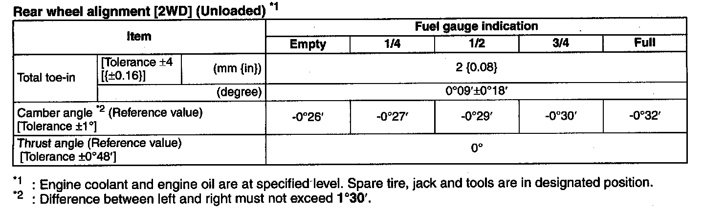Rear wheel alignment [2WD] (Unloaded) *1: