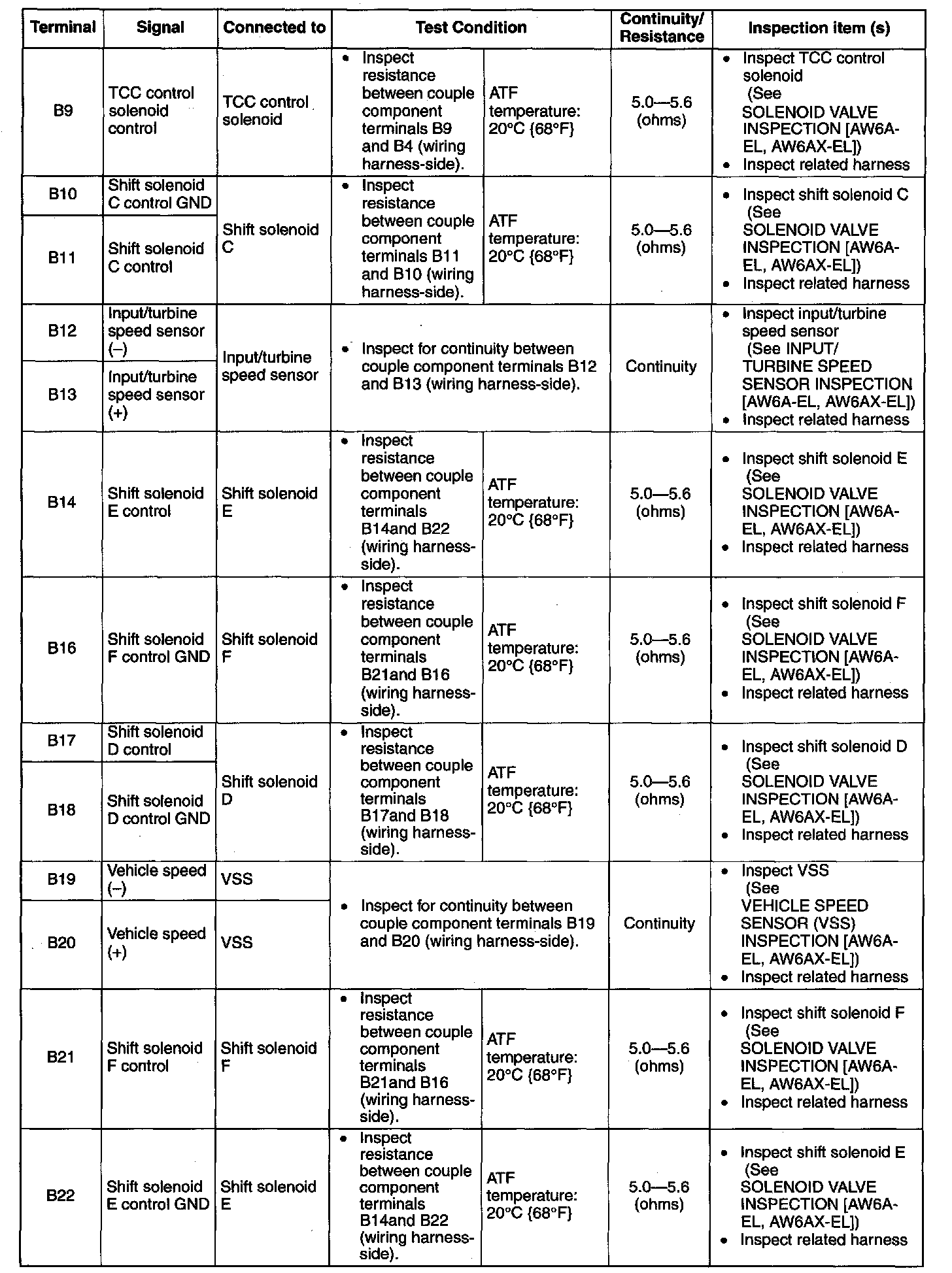 TCM INSPECTION [AW6A-EL, AW6AX-EL]TR Switch Operating Inspection