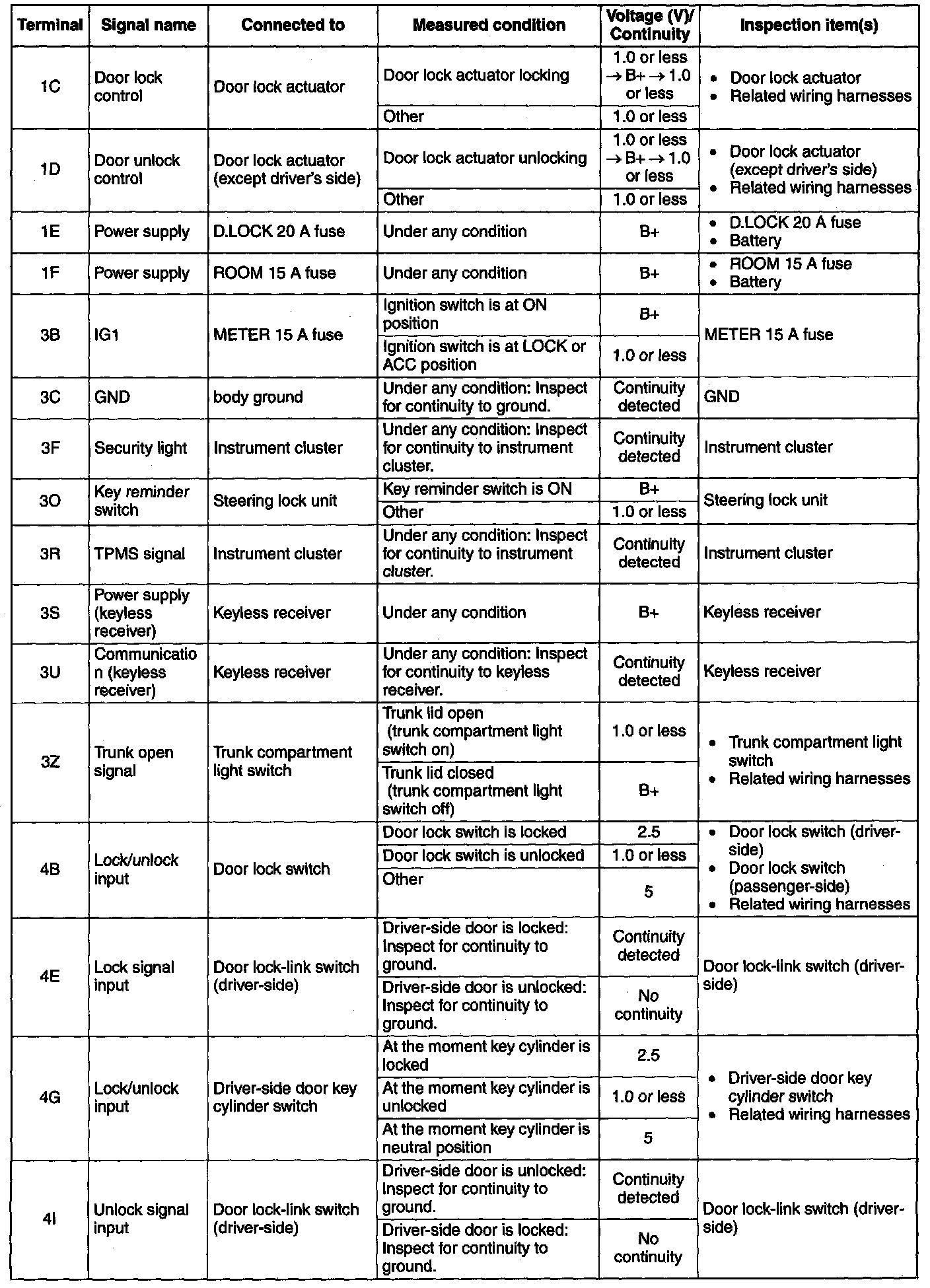 Terminal Voltage Table (Reference) (Part 3):